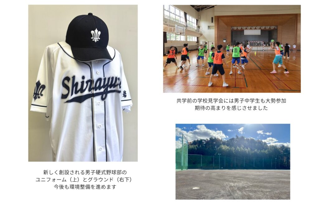 新たな部活動として男子硬式野球部(高校)を創設。また、従来の部活動のほとんどは男子も活動できることになります。男子バスケットボール部(高校)は、岩手ビッグブルズと連携し充実した練習環境の確保に努めます。